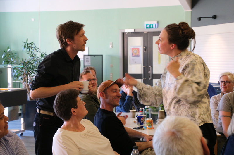 Forumteater med Komediehuset blev brugt som afsæt for samtale og eftertanke. Skuespillerne Sabrina og Andreas spillede – med indbygget humor – forskellige versioner af samme morgenscene: en hverdagskonflikt, hvor samarbejdet mellem pårørende og medarbejdere hurtigt kunne blive udfordret.